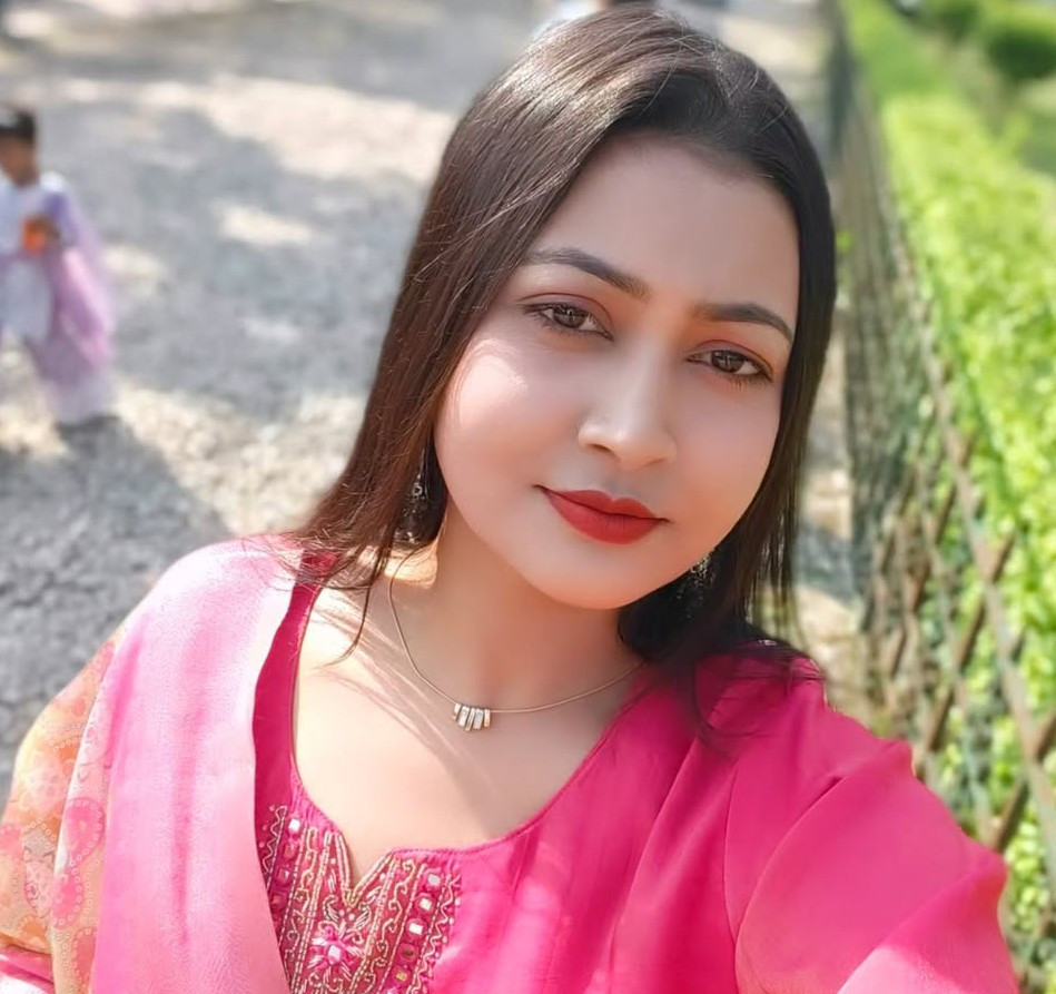 হাতের বাহু সরু, গলা লম্বা। গায়ের রঙ শ্যামলা। আর মাঝারী গড়নের যে ছবিটি দেখেছিলাম, সেখানে সালোয়ার কামিজ পড়া অবস্থায় ছিল সে। একটি চেয়ারে বসা ছবি। brown কালারের কামিজ পড়ে ছিল। বুকের এক পাশে ওড়না দেয়া। চুল একপাশে করে ফেলে রাখা ছিল। কামিজটি ঢোলা করে বানানো ছিল, তাই বুকের আকার তেমন স্পষ্ট করে বোঝা যাচ্ছিল না। তার পরেও মনে হচ্ছিল যে বুকের মাপ ৩২ থেকে বেশীই হবে। লম্বা ভরাট মুখ ছিল। এবং আগের থেকে আকর্ষণীয় লাগছিল।