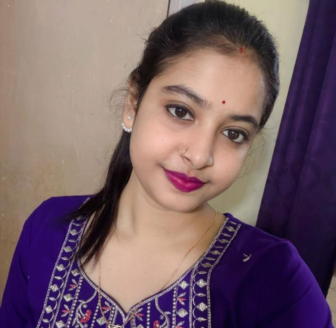 মাসি একটা বেগুনী পেটিকোট ও বেগুনী লেসী ব্রা পড়া.