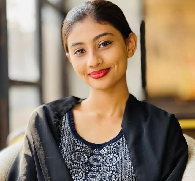 উনি একটু লজ্জা পেয়ে অন্য দিকে তাকিয়ে বলল