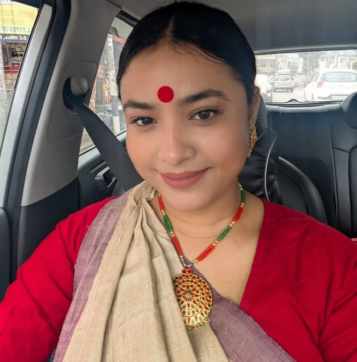 আমি সঞ্চারীর কপালে, কানে ও হাতে রং মাখানোর পর ওর গলায় রং মাখাতে গেলাম।