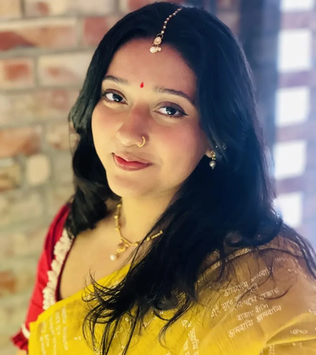 – এই যে পাশের বাড়ির নমিতা দি। তোমাকে চোখ দিয়ে গেলে না ভাবছো?
